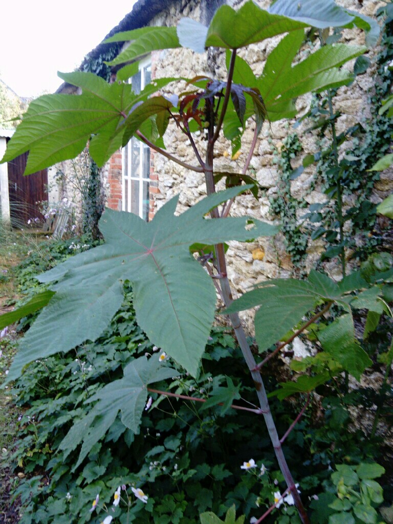 Bonjour, je vous contacte ce jour pour avoir de l'aide dans l'identification de cette plante. Elle a poussé très vite, en l'espace de quelques semaines. Elle fait environ 1m70 possède de très grandes feuilles et la tige est un peu molle au toucher et de couleur violacée. Elle pousse côté nord dans ...
