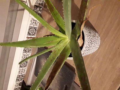 J'ai un aloe vera bientôt 1 an, il est près du fenêtre mais il y a des petites tiges qui ont séché marrons et les autres tiges dur mais avec taches marrons qui grossissent de plus en plus voir photos.