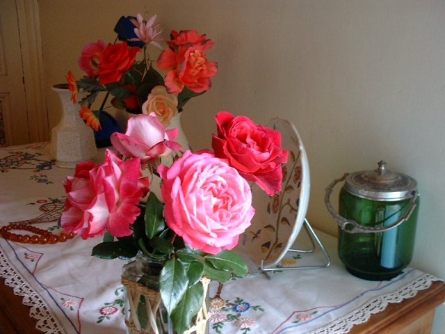 Cette plante était dehors cet été sinon je la rentre l'hiver le temps qu'elle forcisse. J'aurais dû la repiquer depuis longtemps mais je n'ai que deux boutures de ce rosier et j'ai peur de les perdre alors j'en garde une en pot, l'autre ayant du mal à s'acclimater au jardin (une racine qui tombe à ...