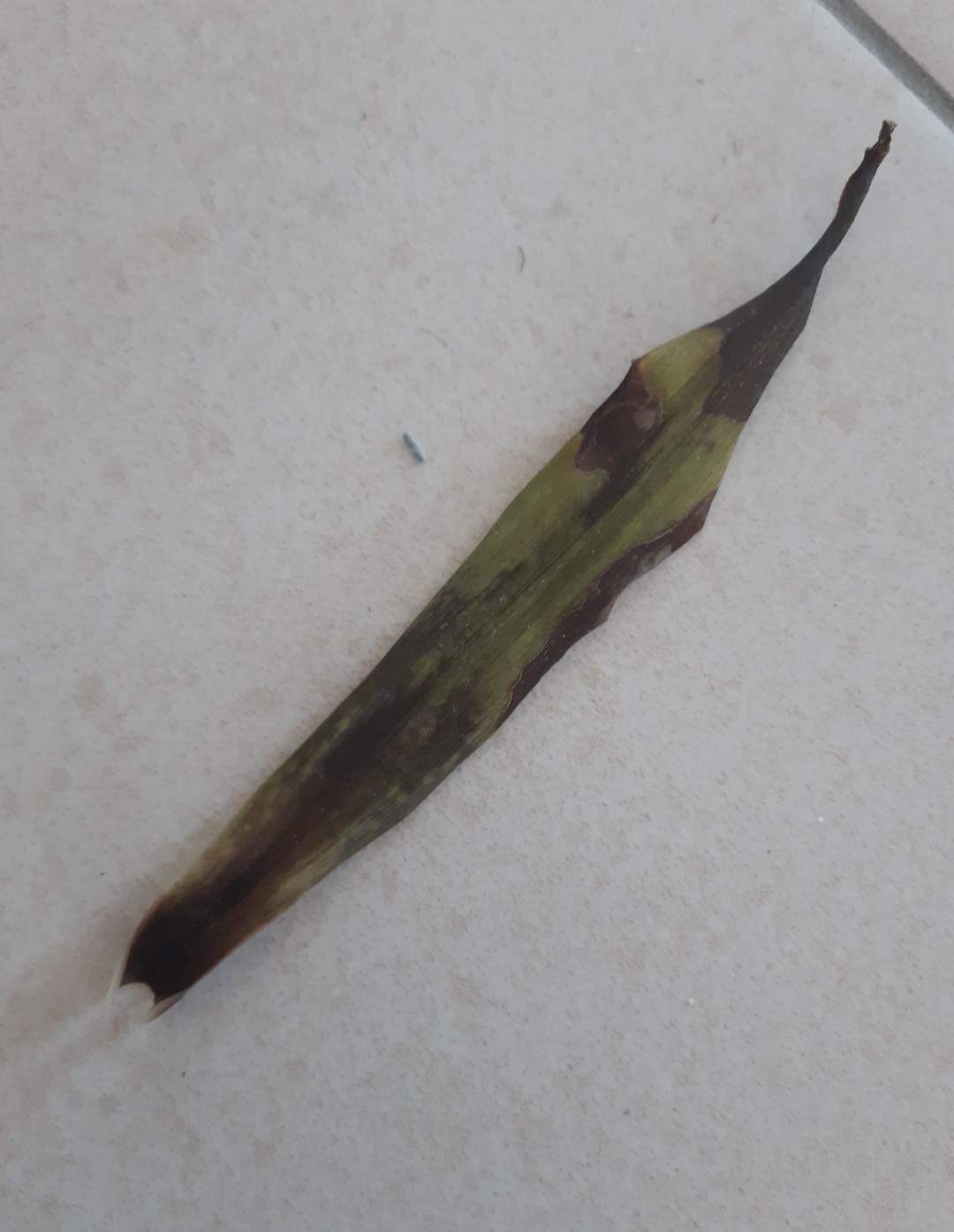 En fait j'avais quelques photos, voilà à quoi ressemble les feuilles quand elles commencent à jaunir/noircir