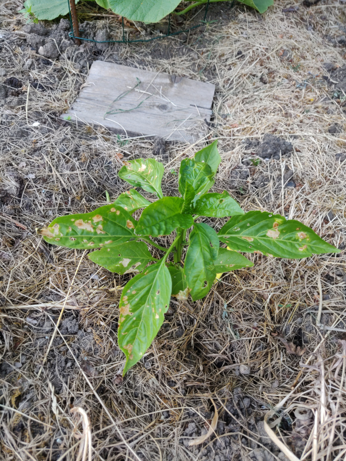 Il apparaît sur mes 2 plants de poivron des tâches marron depuis environ 2 semaines. Les plants étaient sous cloche jusqu'à il y a 3 jours.