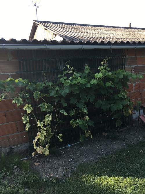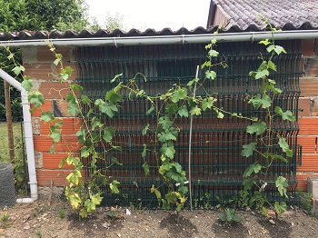 merci pour le lien, le mur du garage qui est exposé au sud mais je pense le laissé en l'état d'origine . La distance entre les poteaux est 4m .La variété de gauche a droite chasselas blanc-muscat alexandrie-muscat de hambourg. J'ai vu qu'on pouvait couper les tiges à 0.80 pour éviter de monter trop ...