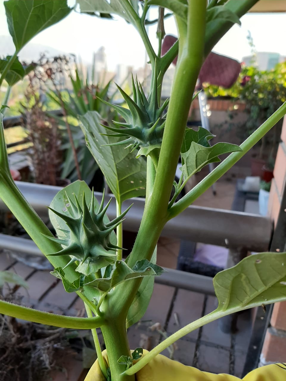 Qui pourrait identifier cette plante qui a poussé dans une jardinière placée sur un balcon à Santiago du Chili chez mon frère ?
