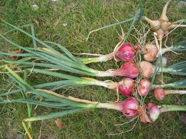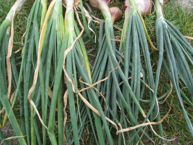 déjà, les échalottes grises étaient très très accrochées au sol (signe effectivement de sécheresse) aujourd'hui, comme depuis ...