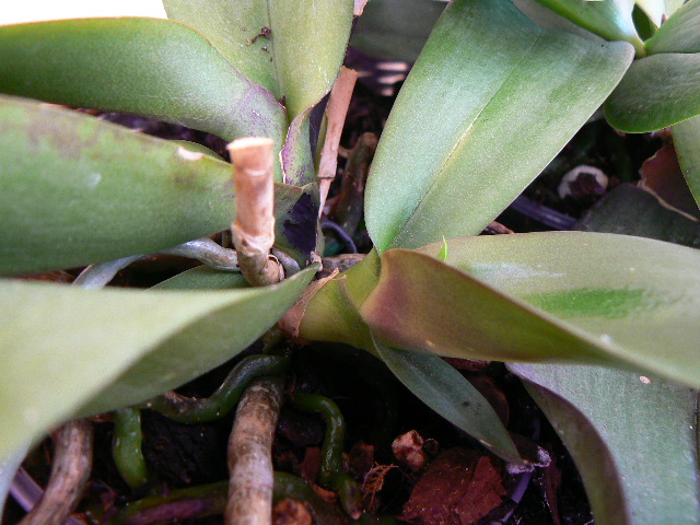 après avoir baigné mes orchidées, ma femme a coupé les grandes racines sous le pot,