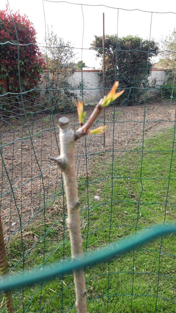 On l'a planté au mois de juin mais on a dû le changer de place cet été pour pouvoir installer un poulailler fermé suite à une attaque de renard, il gênait. Il a eu des feuilles l'année dernière. La branche cassée a des bourgeons mais au dessus de la cassure.