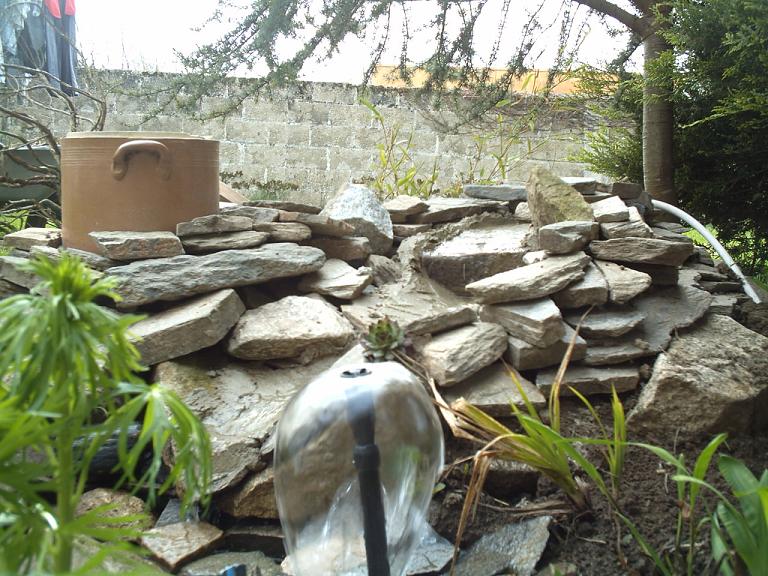 je n'avais pas d'objectif précis. Un soir en rentrant de l'école, mon pere avait raporté un tas de pierre qu'il savais pas quoi faire!!!!! j'ai fabriqué cette fontaine "à l'oeil" ...