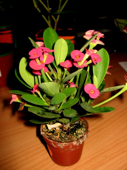 - Sujet : Plante grasse, d'intérieur, épineuse, à fleurs rouge...