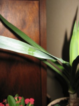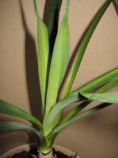 Je l'ai sauvé d'une pépinière abandonnée, il y a 2 ans. Elle possédait beaucoup de feuille, mais un triste excedent d'arrosage a failli la tuer cet hiver. Rempotée, elle repart avec une nouvelle pousse. Mais de qui s'agit-il ? Les feuilles sont assez longues, 50/80 cm, très rigides. Le tronc ...