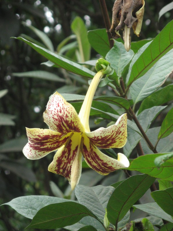 Ne serait-ce pas un hybride de DATURA? Cette fleur a la même forme étirée.