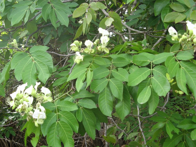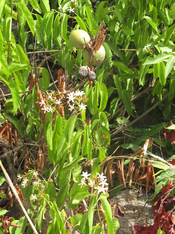 Cette liane qui produit une floraison de petites fleurs blanches pousse dans les terrains arides. Toutefois, je ne suis pas certain que les fruits soient de cette liane.