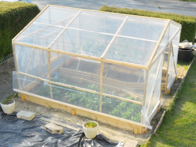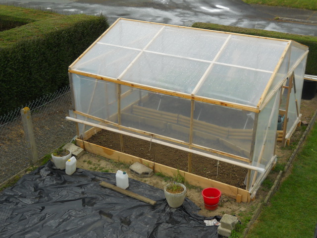 avec un peu de retard voici une photo de la serre terminée, reste plus qu'a la remplir.