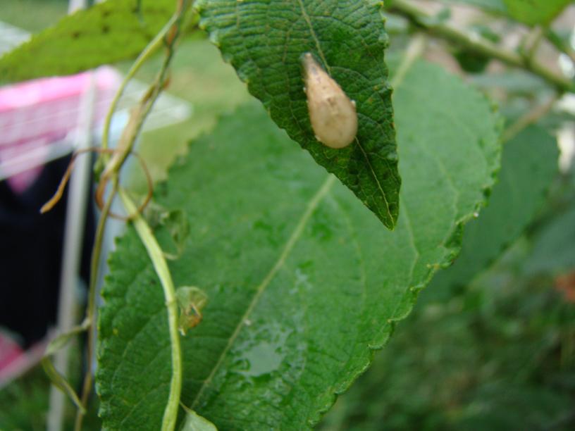 Décidément cet arbre je ne l'aime pas beaucoup et en plpus il m'inquiète beaucoup. mise à part le fait qu'il soit abondamment colonisé par les pucerons, coccinelles (ça j'adore) et les guêpes, il est maintenant envahis par des chenilles et larves que je ne connais pas. Voici les photos de larves et ...