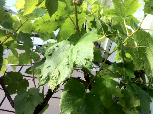 J'ai bien regardé, ce ne peut pas être des animaux. Il n'y a pas de pattes. Je me demande si ce sont les fourmis qui ont fabriqué ces boutons. Certaines vignes n'ont rien, d'autres en ont beaucoup.