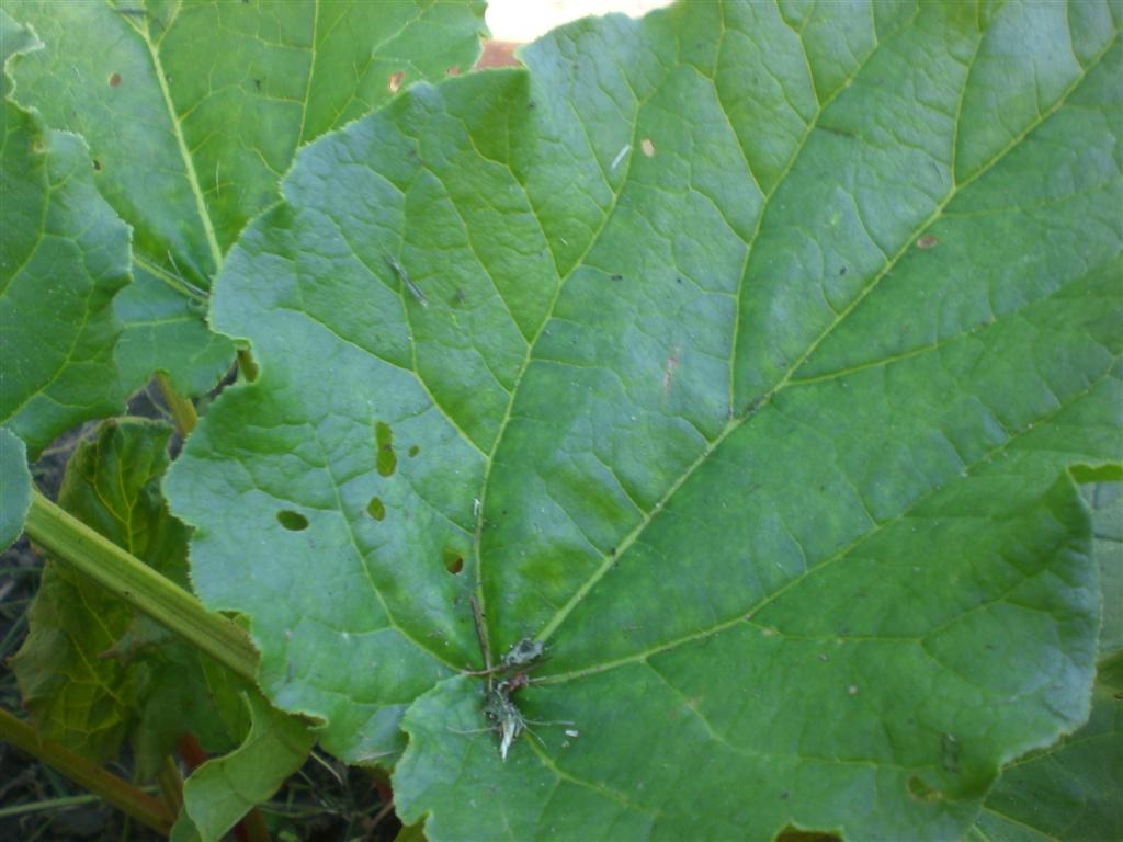 je trouve qu'il y a bcp de petits trous dans mes feuilles de rhubarbe. c'est peut etre normal mais comme c'est mon 1er potager je prefere me renseigner