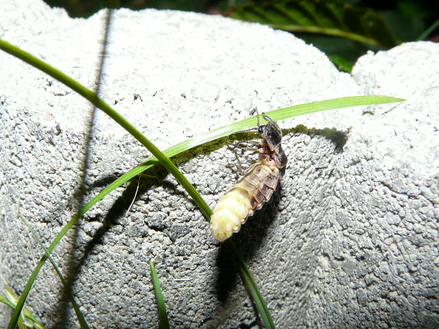Hier soir j'ai observé avec beaucoup de plaisir ce "lampyre" ou vers luisant femelle dans mon jardin. Je n'en avais plus vu depuis bien longtemps !