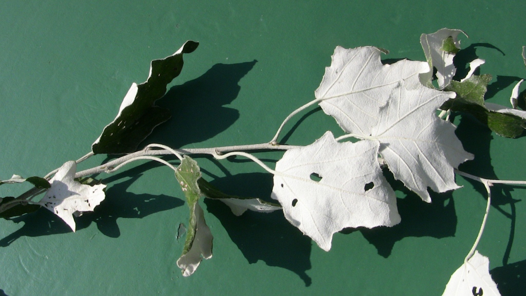 Qui peut me donner le nom de cet arbuste dont les feuilles sont vertes d'un coté et blanches de l'autre ?