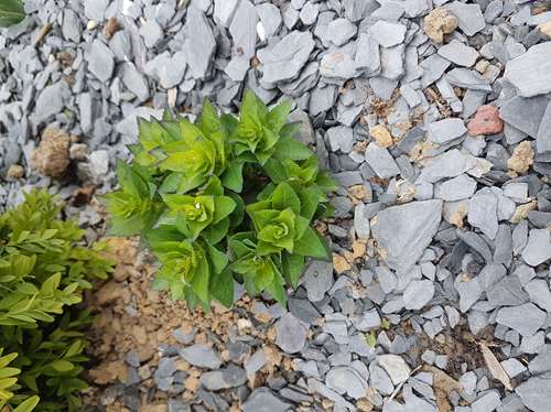 Dans mon parterre de fleurs, il y a une nouvelle plante qui a poussée.