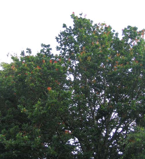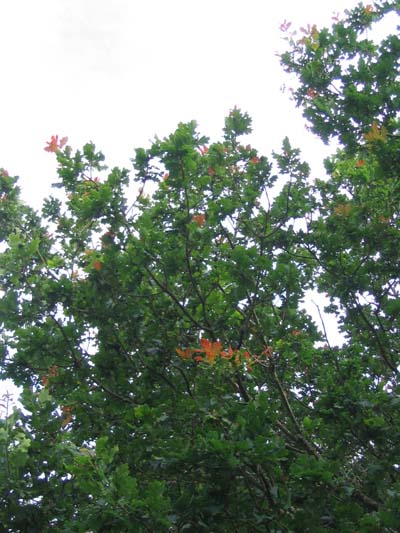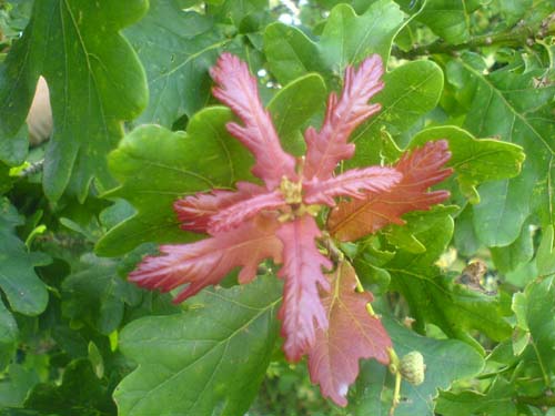 j'ai un grand terrain avec beaucoup de chênes et quelques frênes. Parmi les chênes, un se distingue par ses jeunes pousses rouges. C'est très joli d'ailleurs!