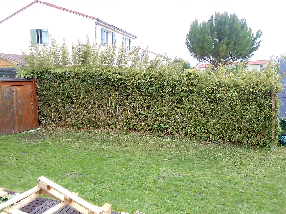 Je trouve que les bambous ne produisent pas une occultation vraiment opaque si tu veux un minimum d'intimité sur ta terrasse par rapport au parking situé derrière.