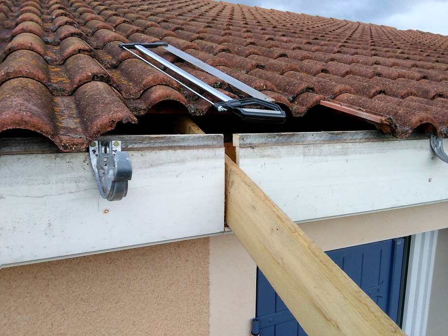 On ne voit pas mais la fixation se ferait à l'intérieur sur la charpente de la maison sans appui sur la volige
