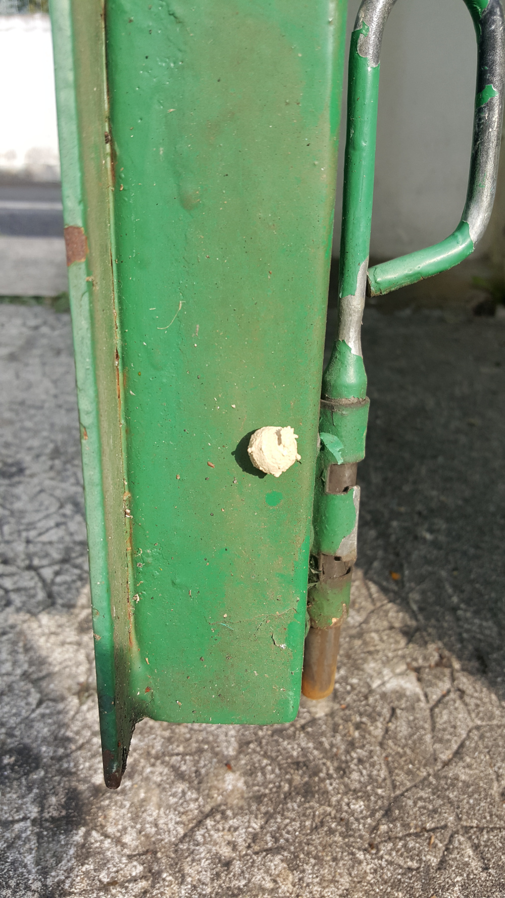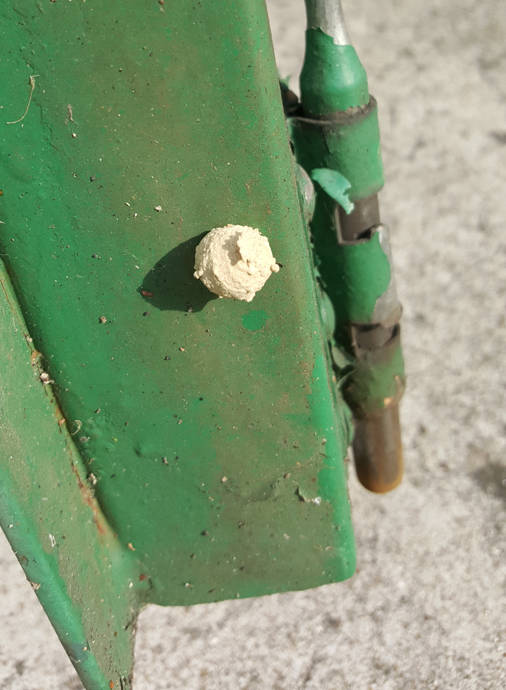 J'ai ce petit cocon qui est apparu sur mon portail. Le premier jour où je l'ai vu il avait encore un trou qui permettait de laisser passer une bête, puis au bout de 24h le trou a été fermé et l'est resté depuis.