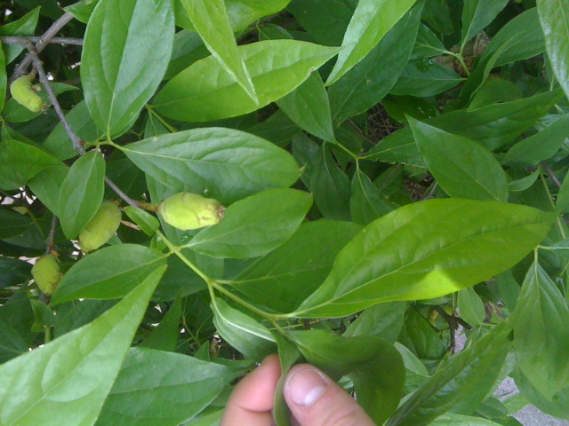 effectivement pascal c est un chimonanthus praecox j ai vu le Meme vers le parc de la tête d' or avec ses fruit donc bravo et un grand merci pour la réponse. je le connaissait mais j en ai plante que des jeunes et apparemment c est que les anciens qui fructifient comme ca.
