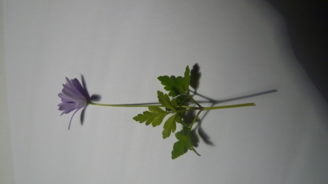 Je ne remarque qu'à l'instant les fleurs sur le bandeau, en haut du site::: ça y ressemble beaucoup mais ça semble plus petit, et feuilles sont au nombre de 3, qui partent à la même hauteur et sont toute découpées. Si ça ne suffit pas je ferai une meilleure photo. Merci d'avance et c'est la première ...