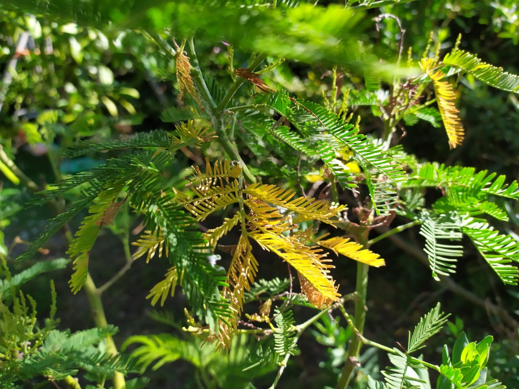 Feuilles sèches sur mimosa