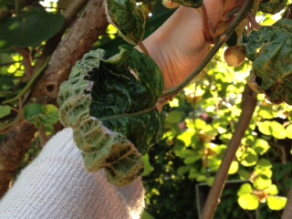 J'ai lu dans plusieurs postes que le kiwi ne tombait jamais malade mais le pied de kiwi femelle dans mon jardin à l'air bien mal en point. Une idée de ce qui pourrait lui causer ces dommages ? Merci...