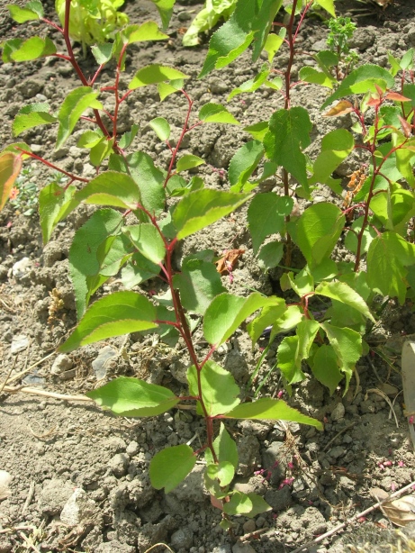 Un cerisier ou un pêcher m'irait bien. C'est probable car des noyaux de fruits divers sont jetés dans le jardin.