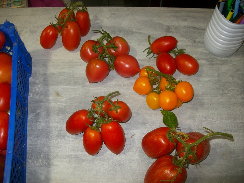 papa m'explique très bien la sélection. Il m'a fait remarqué une mutation, issue d'hybridation accidentelle, sur un plant de déterminée. droite le fruit normal! gauche , en pointe la mutante. Donc on ne garde que ...