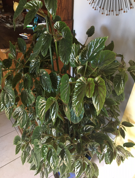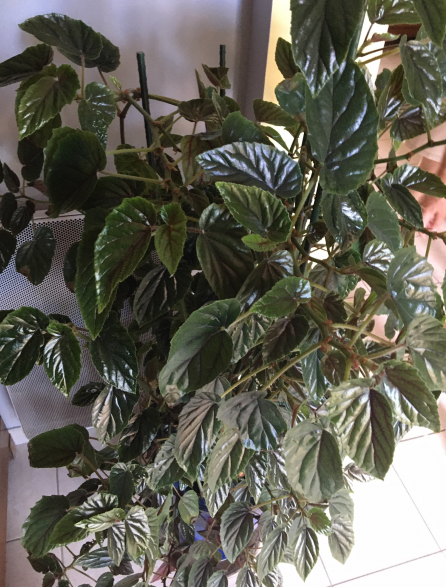 On m'a donné ce begonia il y a un an et demi. Je l'arrose une à deux fois par semaine de maniere modéré. Je l'ai rempoté ce printemps car comme c'etait une bouture il etait dans un petit godet.