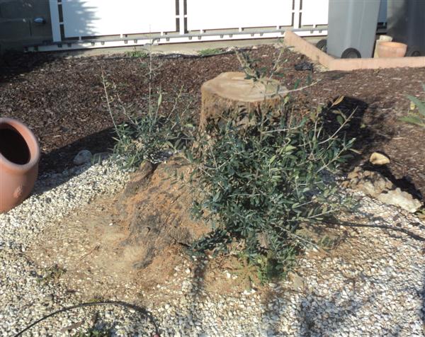 Après avoir recépé mon gros olivier, voici que mon jeune olivier a de nouveau des champignons (2ème année, avant je ne sais pas).