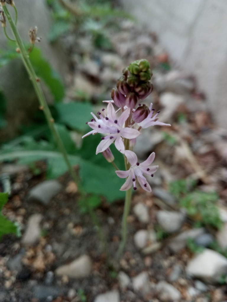 Voici une plante qui fleurie actuellement dans des graviers autour d'un bâtiment en ville.