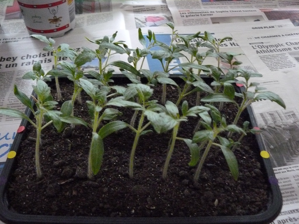 Tomates un 1er lot repiqué en Serre y a une semaine ...