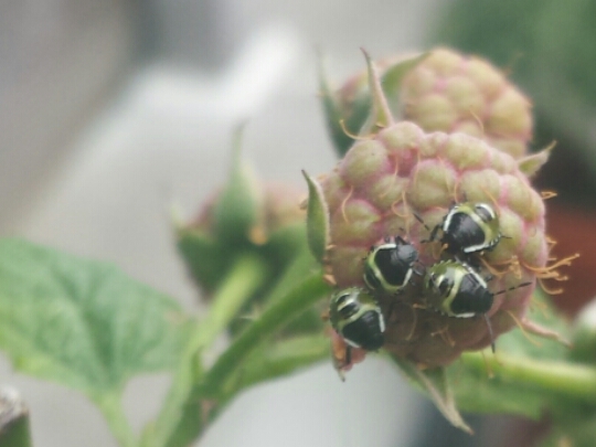 Voici un insecte curieux que j'ai retrouvé en rentrant de vacances. Entre la coccinelle et le scarabée aux belles couleurs, il m'intrigue... Plutôt butineur ou parasite?
