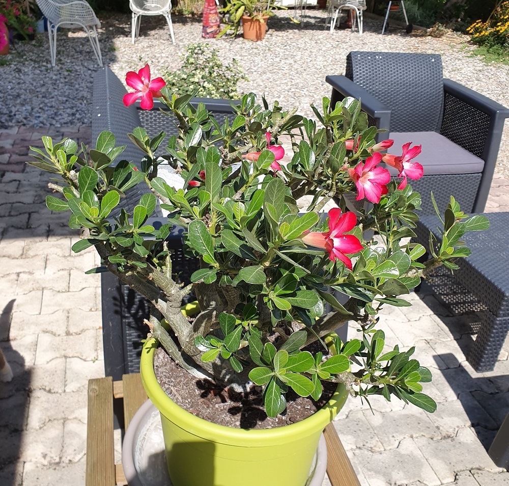 Je viens en effet de la trouver dans un petit livre, sous le nom de Adenium coetenium. Est-ce un synonyme de A. obesum, la rose du désert ?