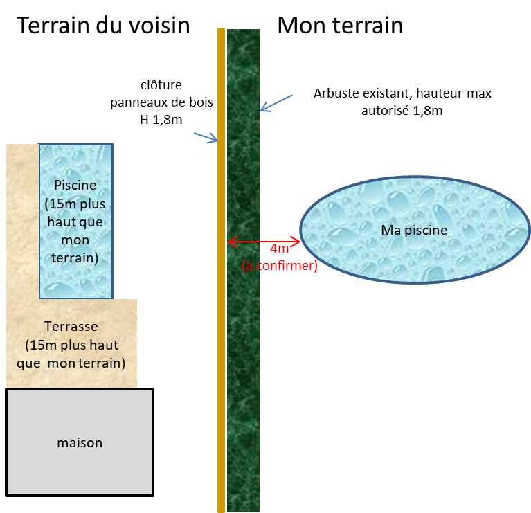 Le voisin lui ne sera pas gêné car il sera en hauteur (15m) donc je ne risque pas de le voir se baigner depuis ma piscine.