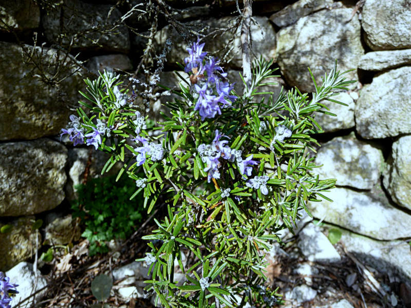 J'ai oublié de vous faire voir le Romarin qui commence à fleurir , j'en ai plusieurs pieds . Celui là il recommence à faire d'autres fleurs on va dire mais il a conservé quelques fleurs pendant tout l'hiver , même sous la neige et le gel .