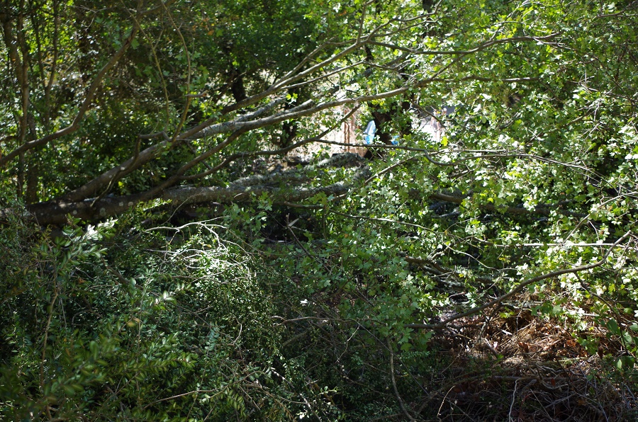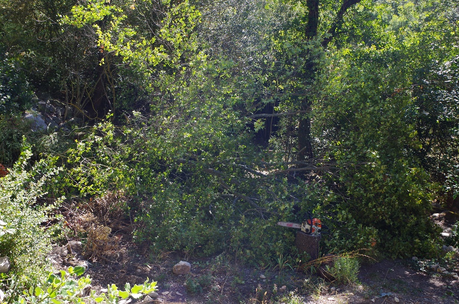 Donc j'agrandis et je commence par abattre des arbres , et arracher les souches avec un treuil , pour faire de la place ,dégager la vue et me dégager des incendies .