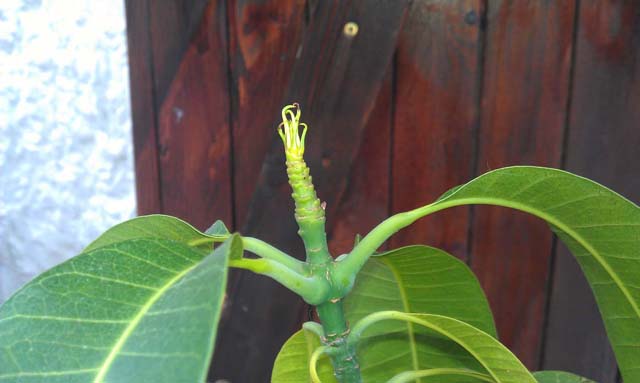 comme promis, une petite photo de mon manguier: allez, une deuxieme! un gros plan sur les futures feuilles en formation: a tres bientot!