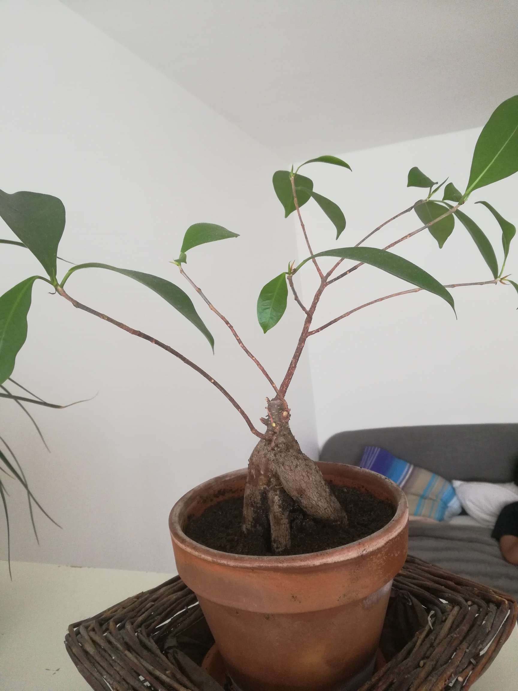Il y a environ 8 ans, ma douce maman m'a offert un ficus (après quelques recherches, je l'ai rapidement identifié comme ficus ginseng). Persuadée de ne pas avoir la main verte, figurez-vous que ce ficus non seulement m'a survécu, mais également à mes multiples déménagements.