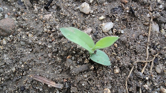Elle apparait, dès le mois d'Avril sous forme de cotylédons, larges, étalés et bien reconnaissables.