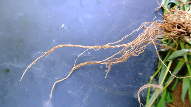 Au début, la plante n'est pas très enracinée et reste facile à arracher. Plus tard dans la saison, son système racinaire touffu s'enterre profondément et la plante nécessite un outil pour être déterrée.