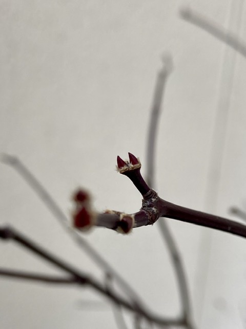 En février, les jeunes plants sont en général un peu plus pressés de démarrer que les vieux arbres. Sous l’effet du soleil direct, la sève se liquéfie , les bourgeons grossissent, parfois s’entrouvrent mais sans se développer complètement, sauf cas particulier au sud ou de protection du vent...
