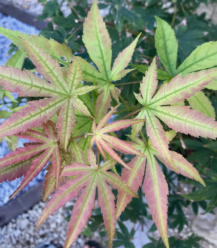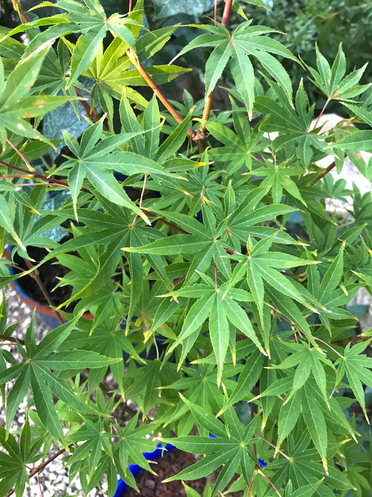 Ce petit erable est surprenant, il a traversé l'été sans probleme c'est incroyable, je l'avais rempoté au printemps juste apres l'achat.