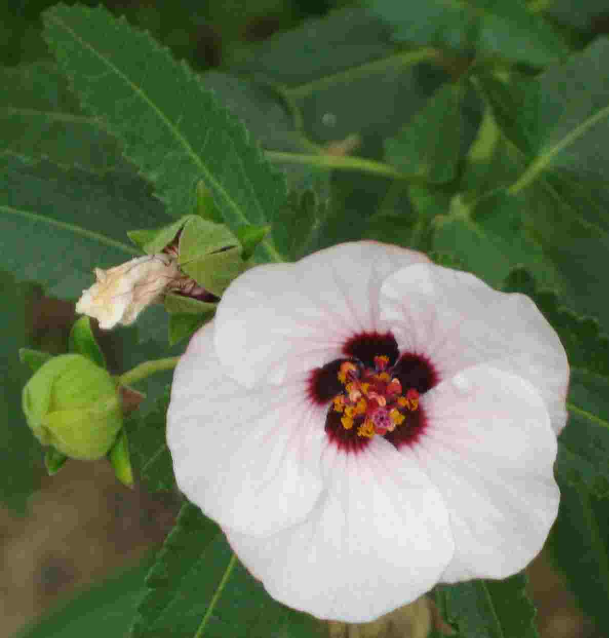 C'est un Hibiscus, mais pas l'habituel. Hibiscus cannabinus .