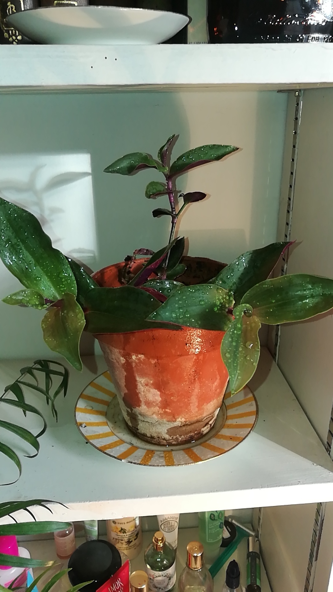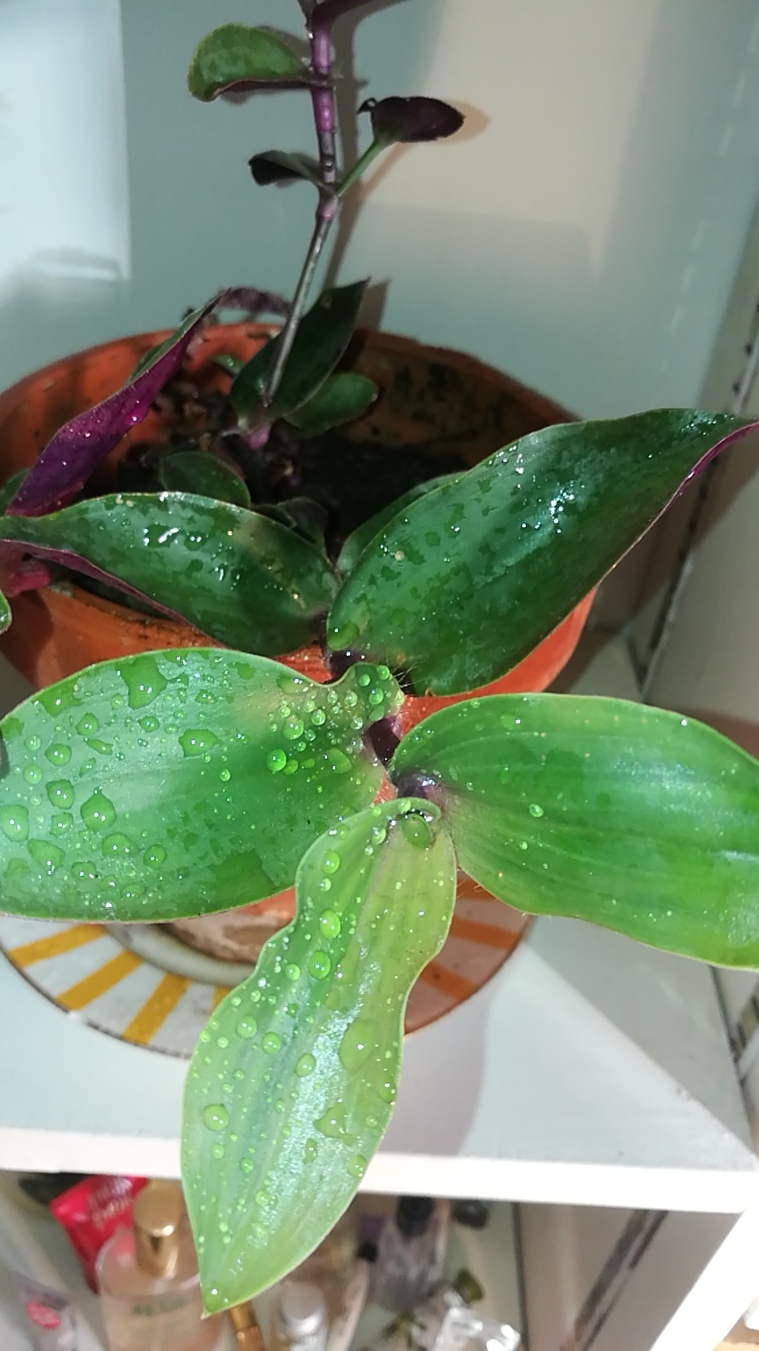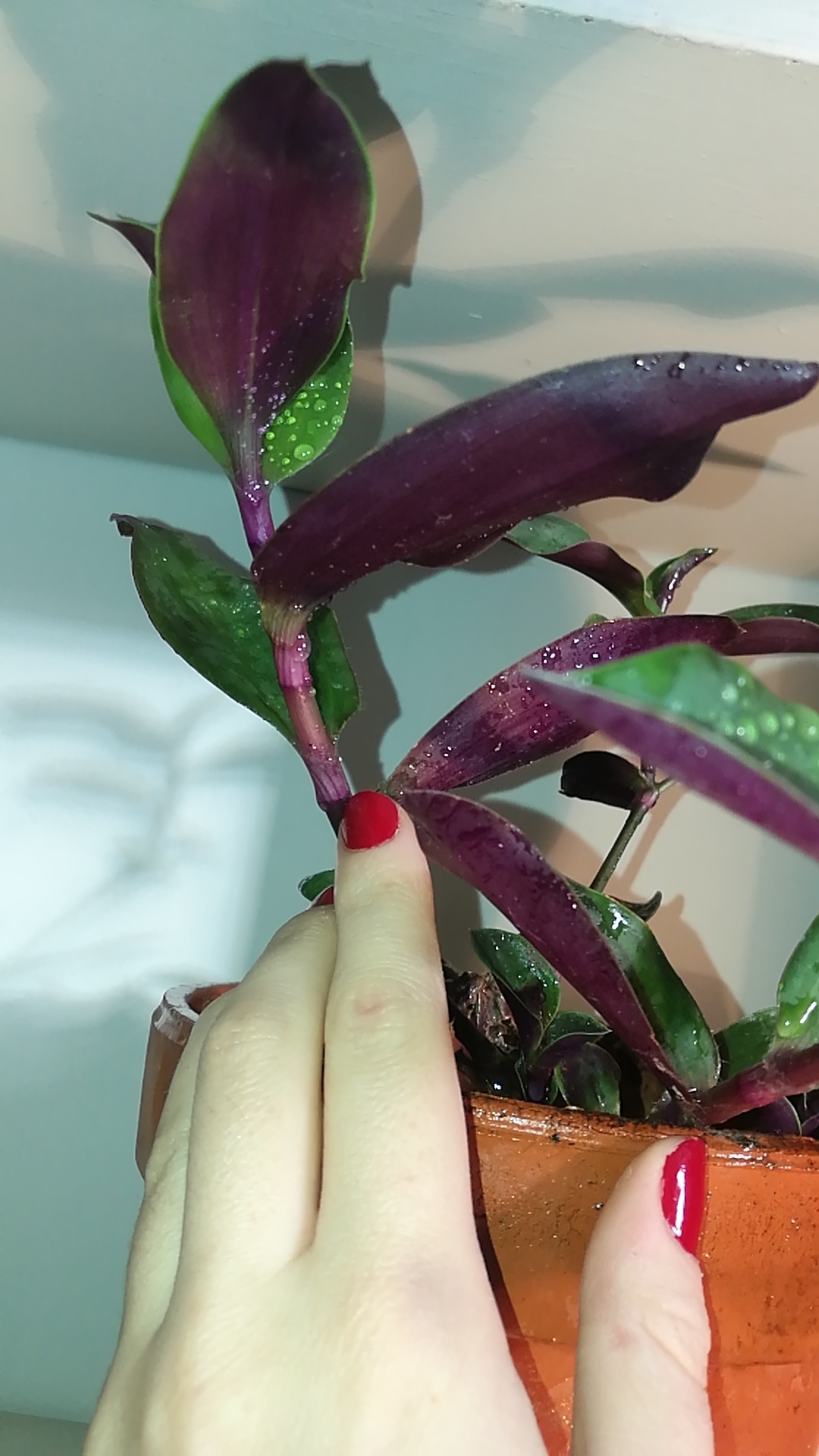Je ne pense pas qu’il s’agIsse de tradescantia palida car son feuillage est très velu, ce qui n’est pas le cas de la plante en photo. Il s’agirait plutôt de tradescantia spathacea rhoeo s’étant effilé par manque de lumière