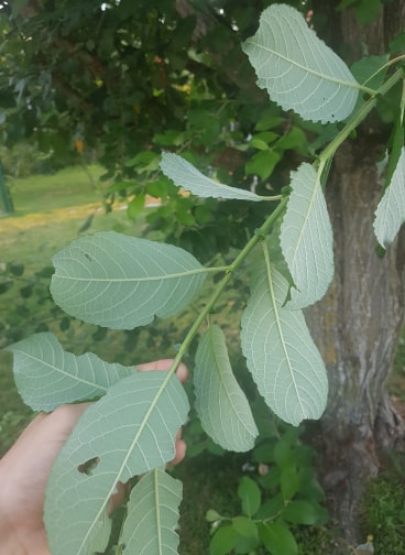 Cet arbre mesure environ cinq mètres, supporte très bien l’élagage, fait de longues tiges vertes avec des feuilles alternées, ovales, nervurées, vertes sur le dessus, blanches dessous. Pas mal de rejets à sa base.